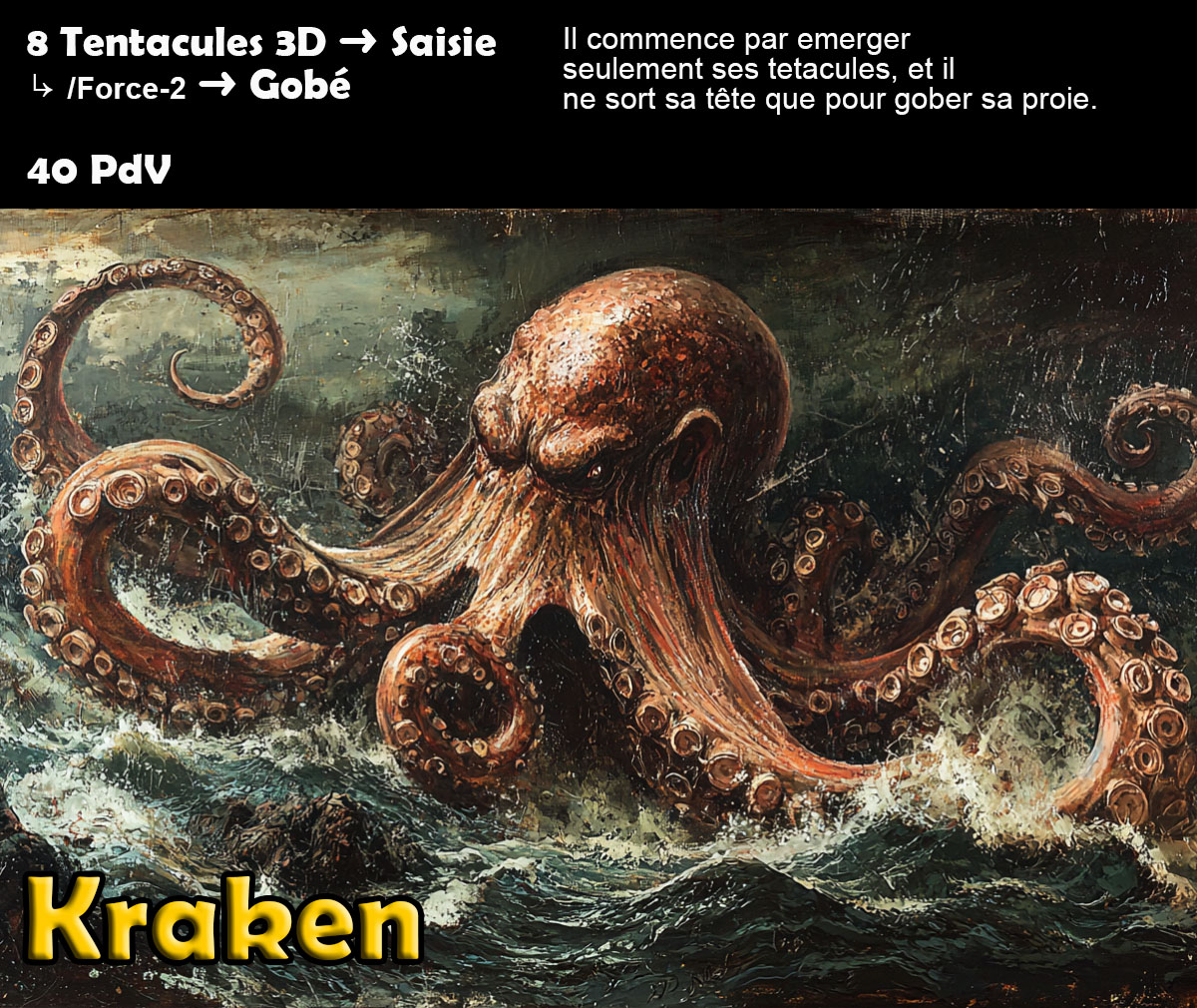 Les tentacules du Kraken (personification de l'Elément Eau) capture puis dévore la victime.