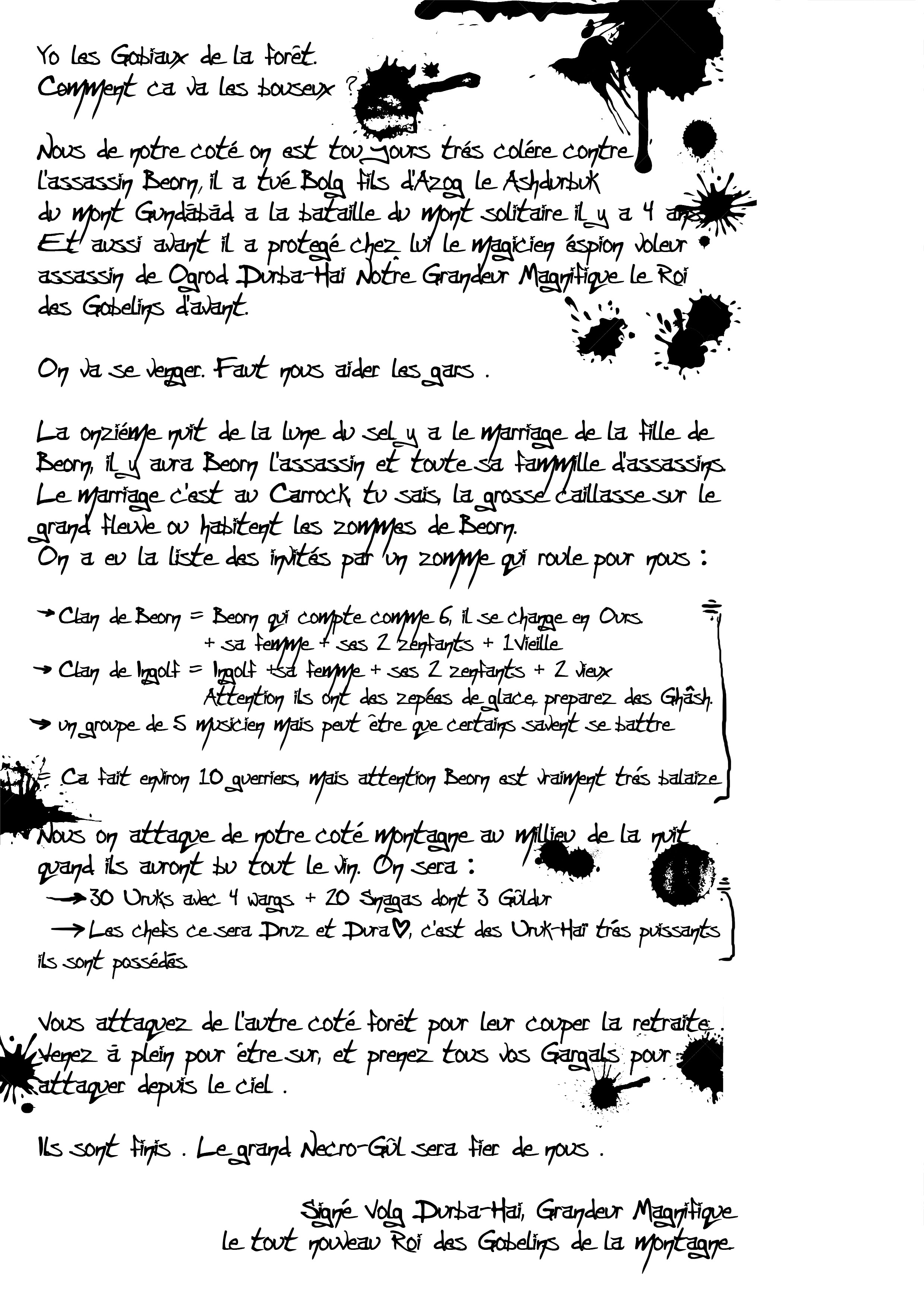 L'objectif principal des gobelin est de couvrir l'un des leurs qui fuiera vers l'Est pour délivrer la lettre destinée aux Gobiaux.