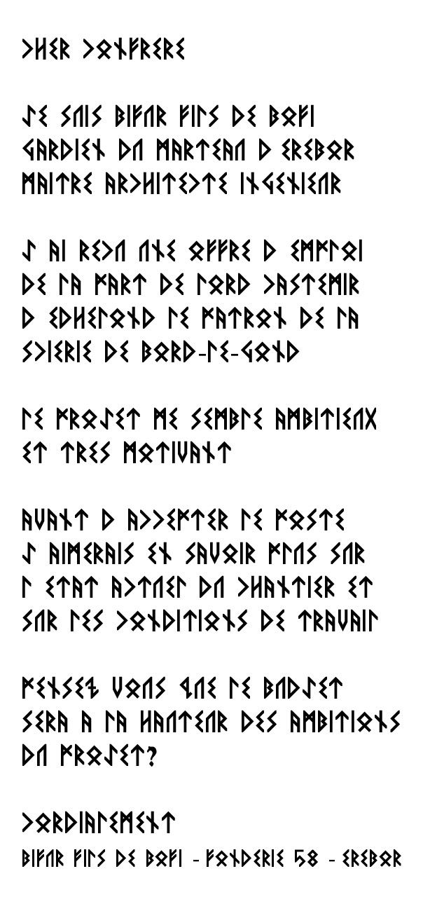 Il semble invité au marriage lui aussi, et propose de faire le chemin ensemble jusqu'à Beornhut.
