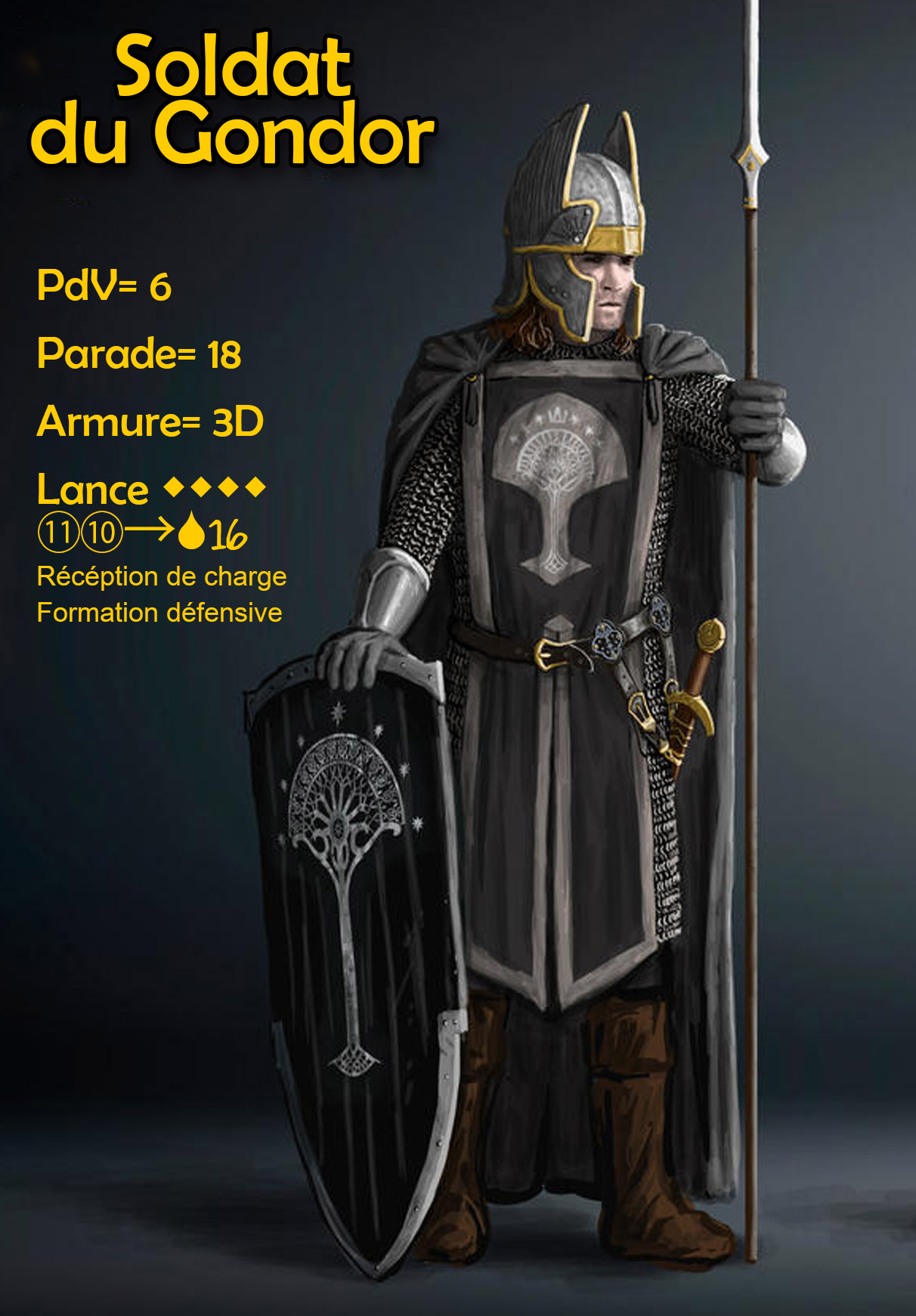 Ils sont accompagnés de 15 Soldats Gondoriens (Piquers armes&armures)