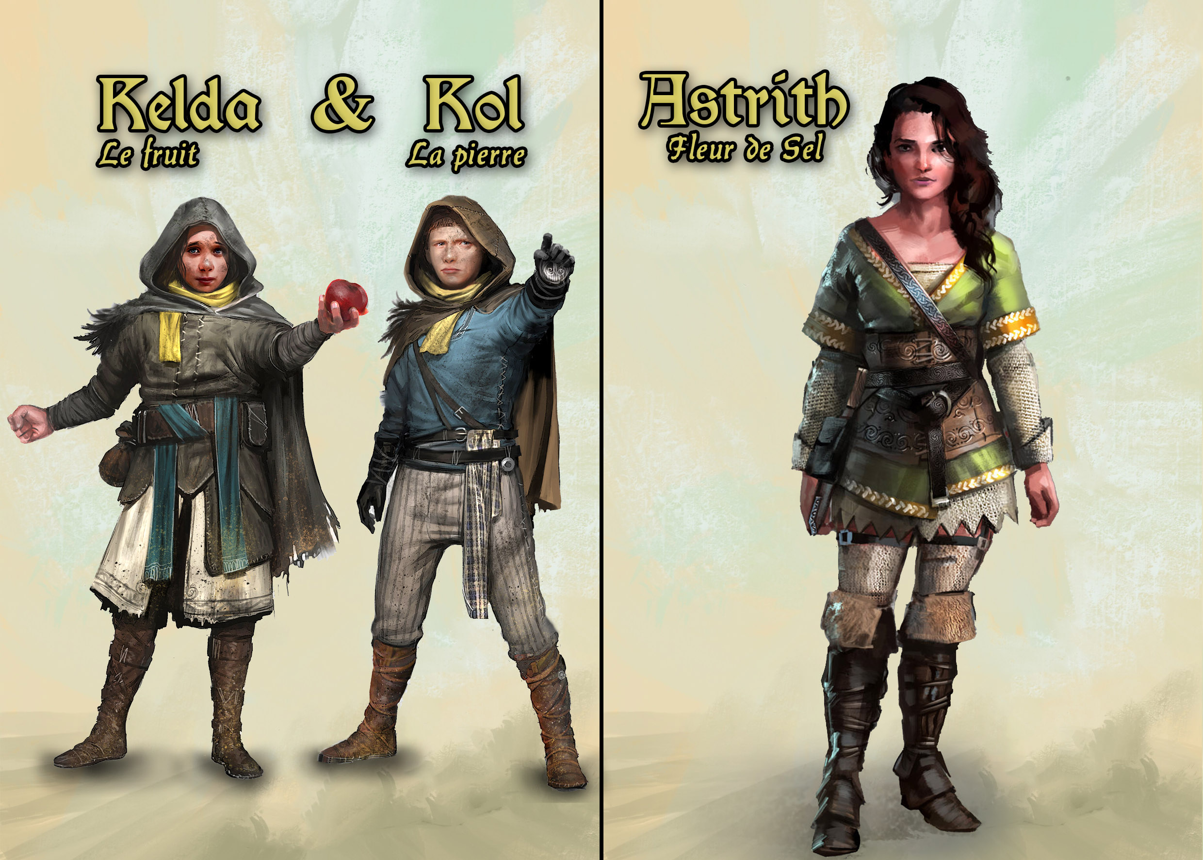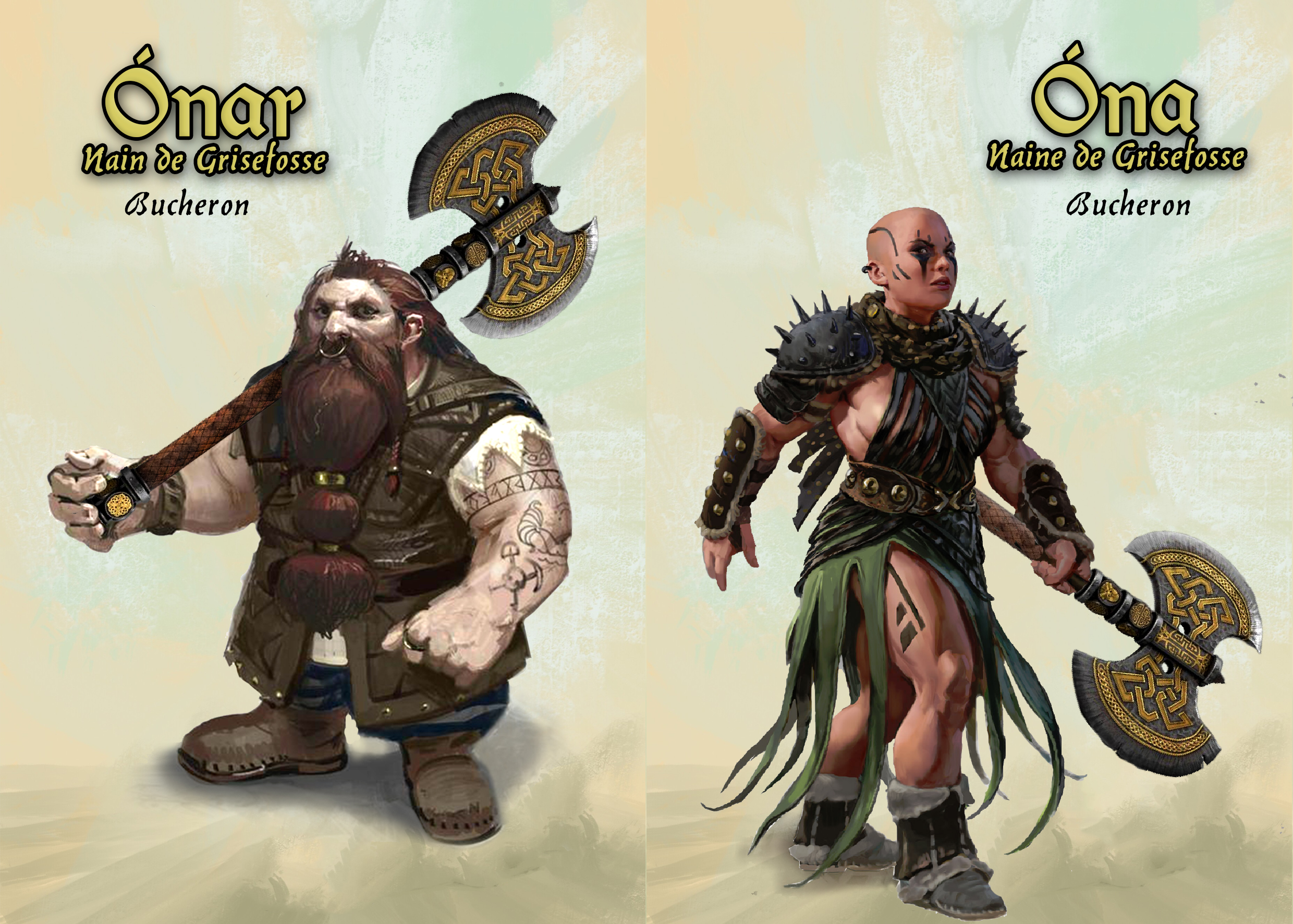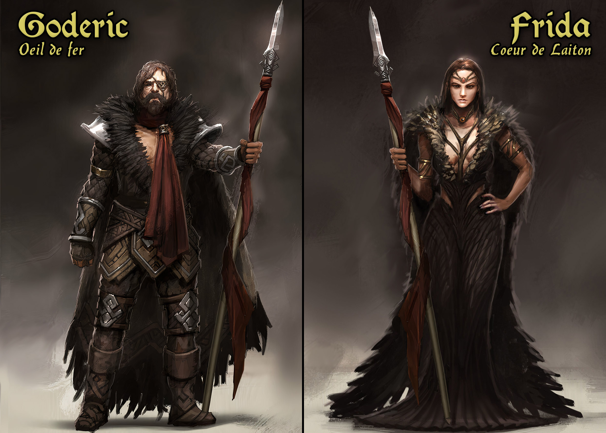 💠 Frida et Goderic : Ils sont des eleveurs de chevaux, déscendant direct de Fram, seigneur des Eotheods et poufendeur du dragon Scatha. Frida est une guerrière implacable, qui se bat à la lance pertuisane, et peut devenir une veritable furie sur un champs de bataille.